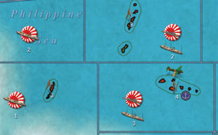 島にいる航空ユニットはその島を含んだ海の領域から外へ出ようとする敵ユニットに対して臨機射撃することができます。